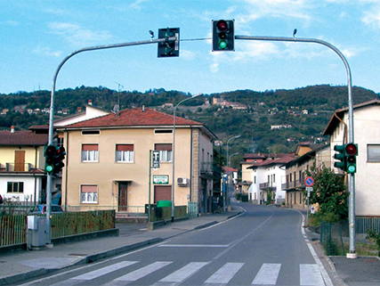 - L’impianto semaforico, è in grado di rilevare, tramite apposito radar a microonde, la velocità di transito dei veicoli a motore.